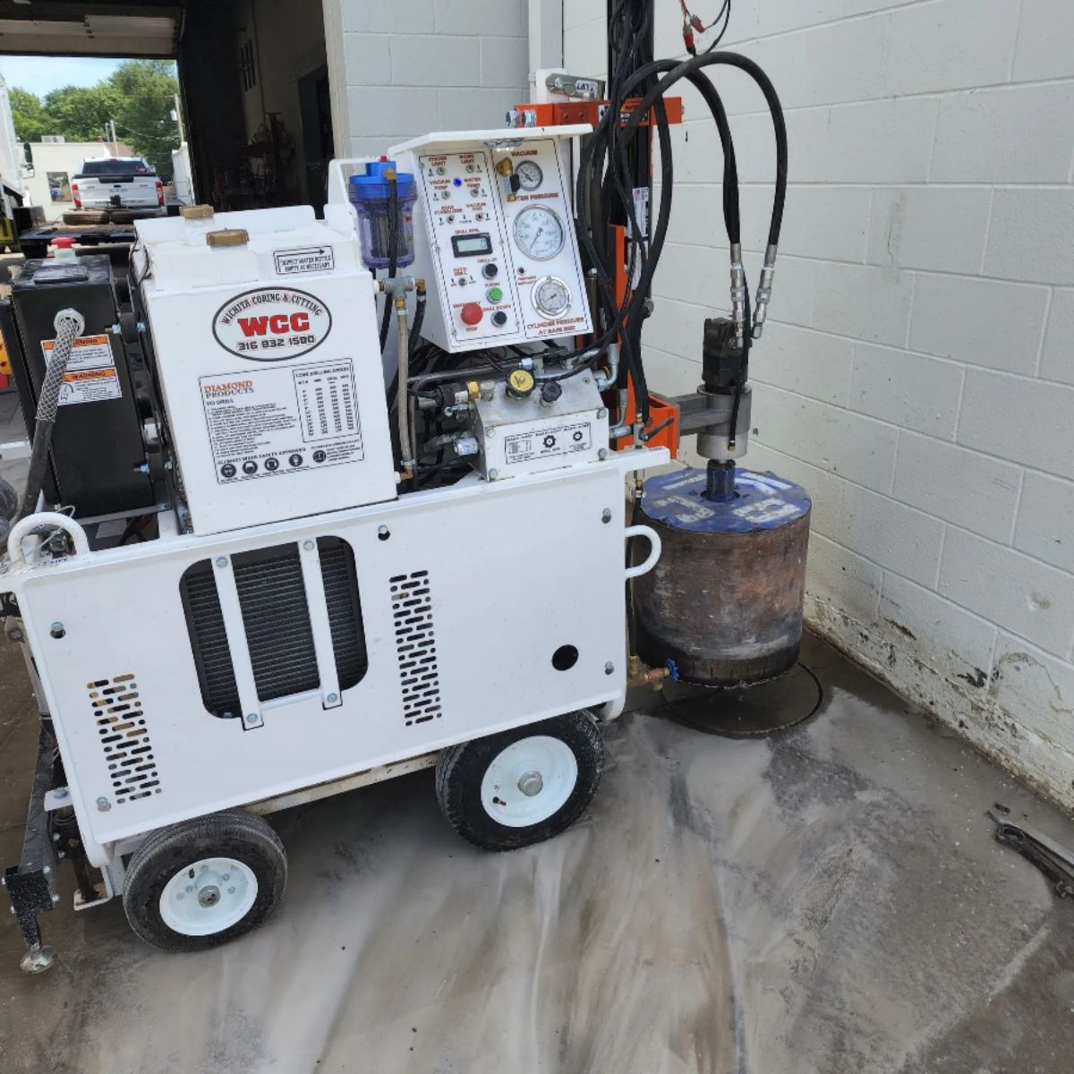 Dust control through wet drilling. Diamond core bits are used with a continuous water feed that cools the bit and captures concrete particles as slurry before they become airborne. This directly addresses one of the most serious health risks in concrete work: crystalline silica. When silica dust gets into the air, it is invisible and dangerous. Wet drilling keeps it contained at the source. Our team follows OSHA silica standards on every job, and the wet drilling process is central to that compliance.